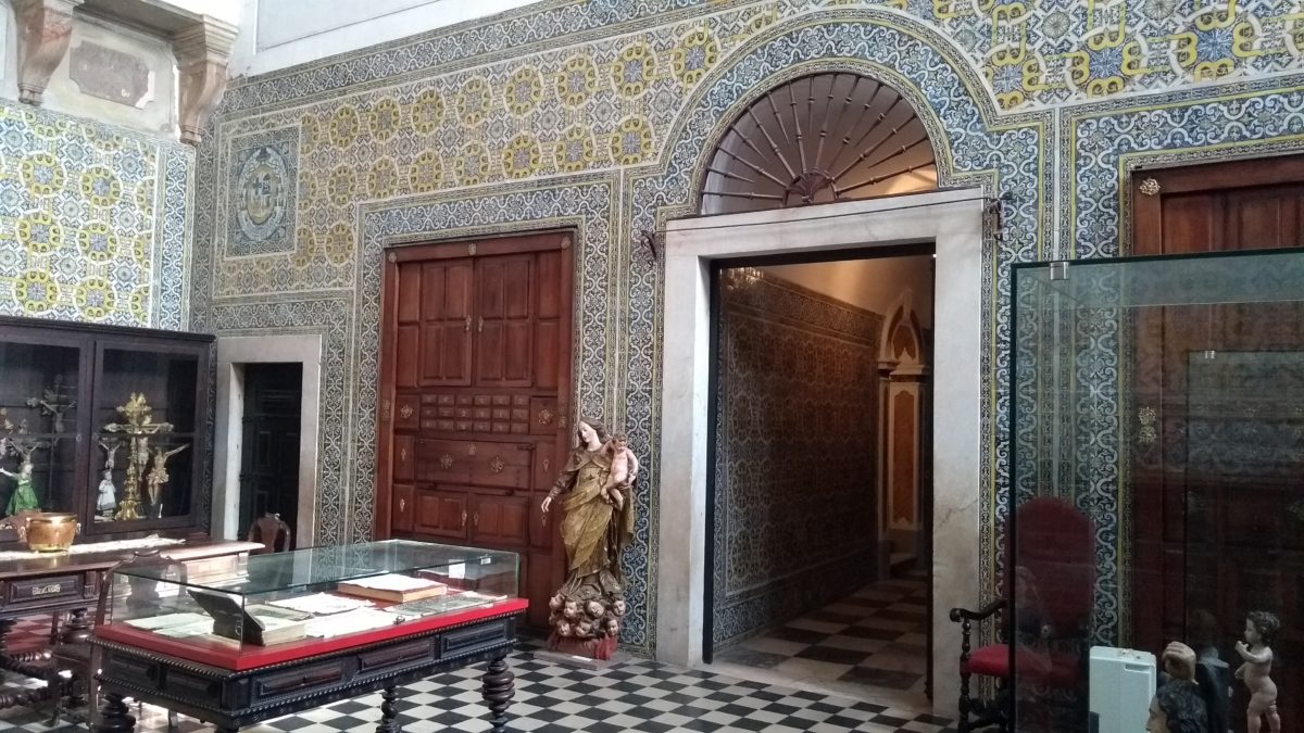 We walked up through the town to the Tourist Office where we picked up a few leaflets and had a chat with the nice guy there although his English was not great. First stop was the big catherdral on the main square. Clearly this was once magnificent bit now is in a bit of a bad way with plaster flaking of the walls and the painted ceiling well past its best. We paid our €1 each to the little lady who spoke nowt but Portuguese but did her best! It was (or had been) very ornate and its heyday must have been magnificent. There was a small museum of sacred art in the sacristry but the star was the sacristry itself with its lovely wooden chests and wall cupboards and gorgeous tiling.