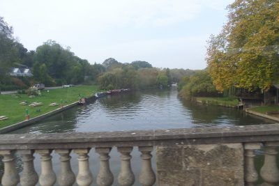 That did not sound as though it could really be done en-route with only limited time available. We fiddled around in Abingdon and Wallingford without success (although both are very pretty little towns, see photo of Thames from a bridge, below), wasting time and effort. On the plus side sunshine and blue skies were struggling through the blanket of cloud.
